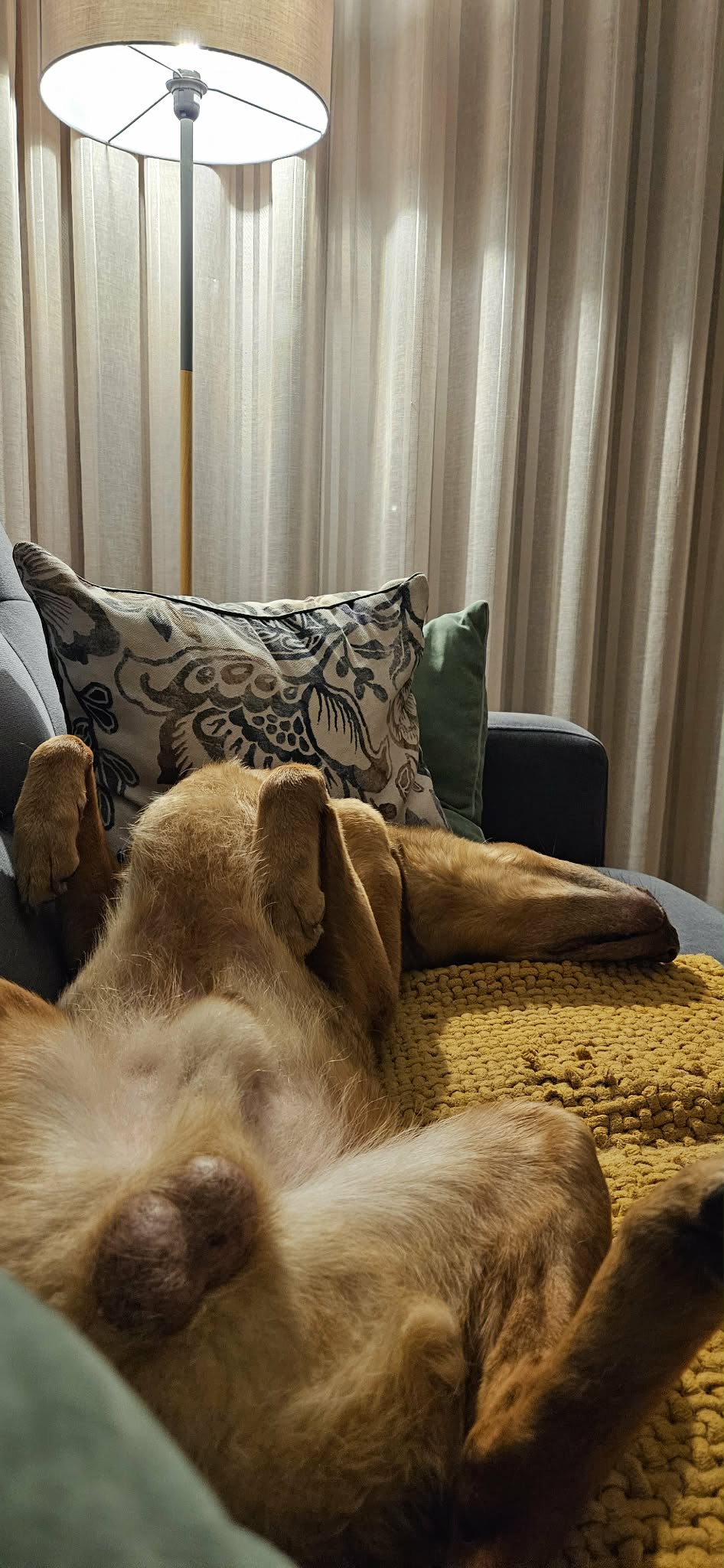 Lubie poranki z Edkiem. Razem pijemy kawę, słuchamy ciszy i medytujemy.Tylko on w takiej pozycji, w której mogą medytować tylko psy.